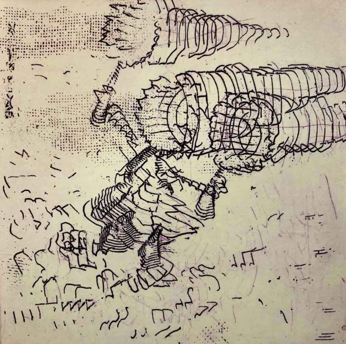 Suarez practice is a mixture of printmaking, sculpture and installation. It revolves around the Spanish word debrayar. This work has no textual translation to English, but it closely approaches the “process where one loses the sense of time”. He seeks to translate debrayar to an aesthetic experience by using figure, landscape, and woodcarving as a medium to capture time. Often borrowing small parts of complex systems of thought and production such as printmaking and literature as a way to explore and restructure different mediums and visual languages. The work uses primarily large woodcut and it’s reductive image production quality, to have a material conversation with the past that explores narrative and the contradictory relation between experience and language. When composing images or spaces, Suarez dosen’t aim to fill in gaps that exist between experience and language. “By approaching my practice as a process of translation, I am gaining at the same time I am losing."