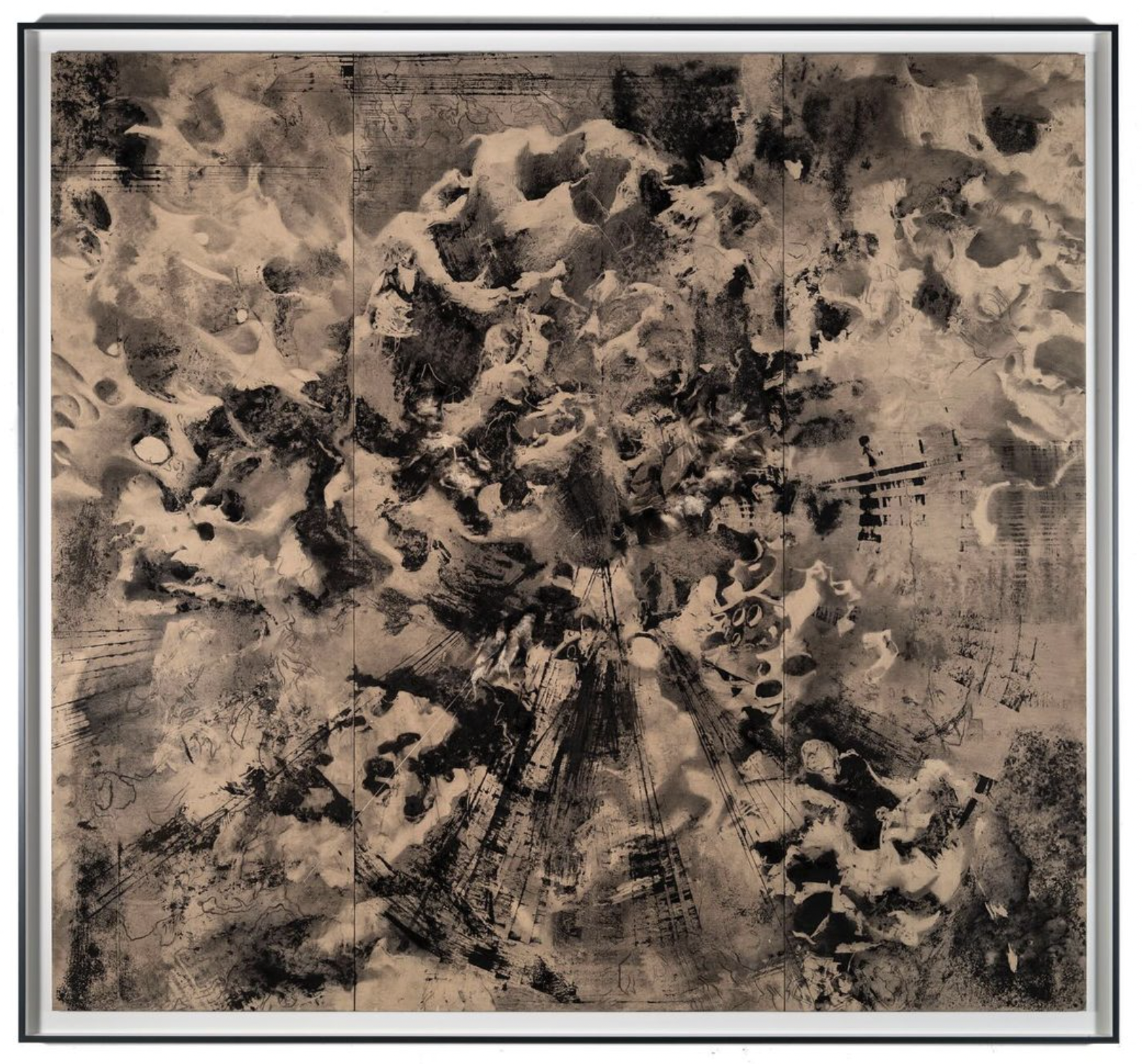 "Emmanuel Gatti practices experimentation in the field of printed works. These large aquatint formats attempt to make this medium, often reduced to a classical approach, a resolutely contemporary process. These formats are imposing, revealing themselves in the architecture and allowing it to be ""dressed in the same way as Japanese draperies or large rollers (Kakemono).