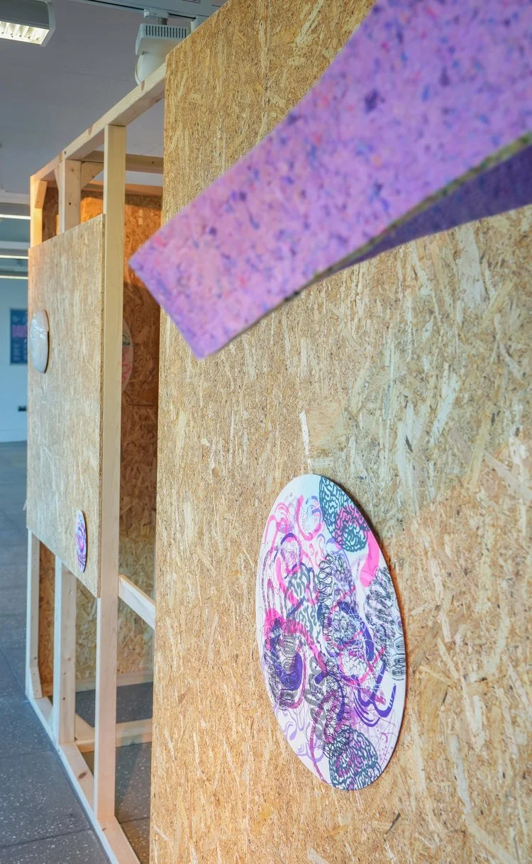 First solo exhibition in a institution at Pontio, a arts performance centre in Bangor. ‘Yr Hyn Sy’n Pylu’ (Of That Which Fades) is a new body of work that presents the subtle implementations of layers and loud statements of colour and form. The abstract forms are derived from her own study and understanding of her dyslexic brain. The balance between too little and too much, what is visually pleasing and total chaos, is something that Rebecca is constantly playing with.