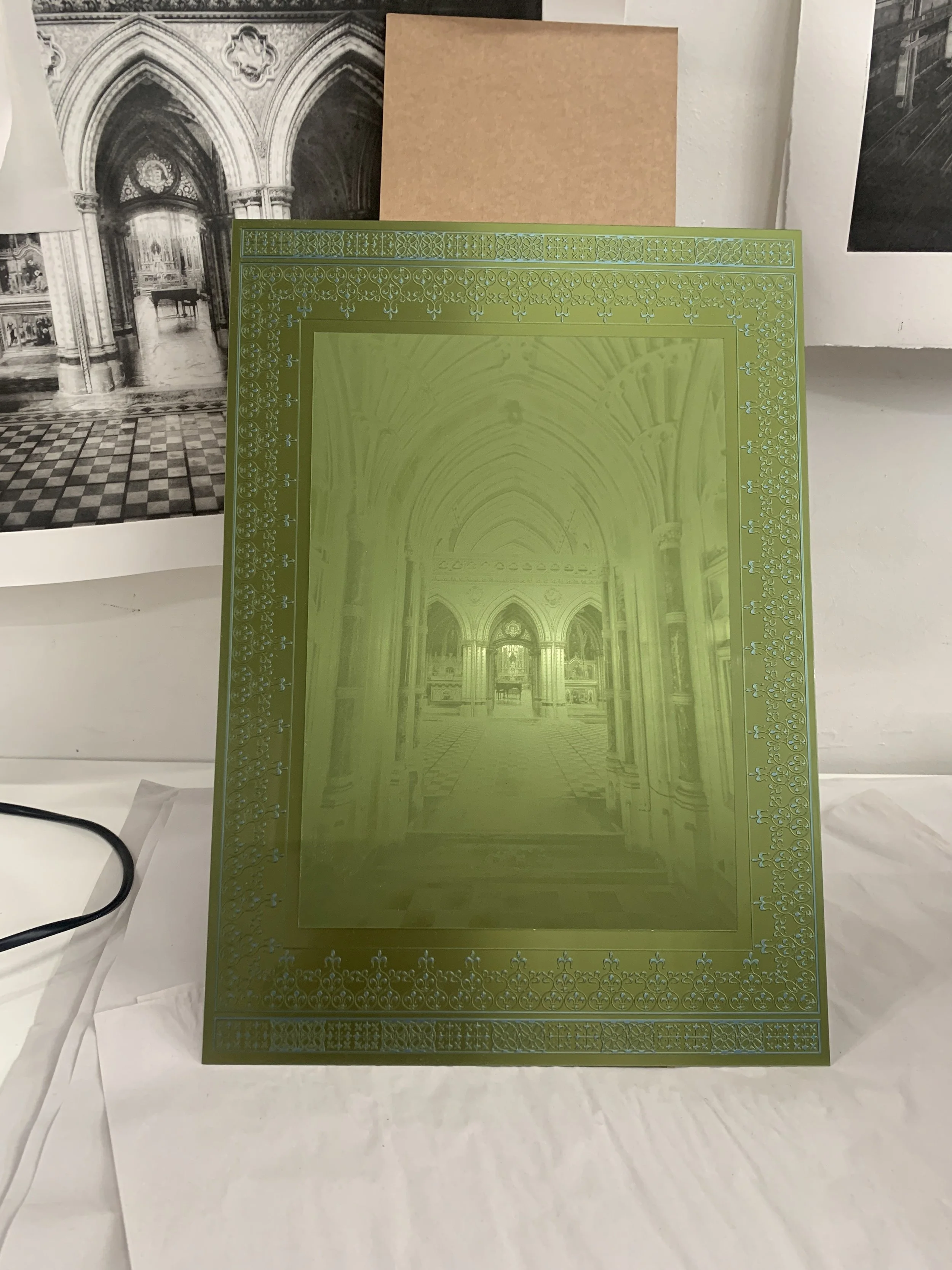 At the moment I'm investigating laser cut woodcuts with the Ushaw material. The collection of photographs I’ve taken from Ushaw have all been organised in my iPad in different albums and I’m starting to strip back the colour and check out the compositions.