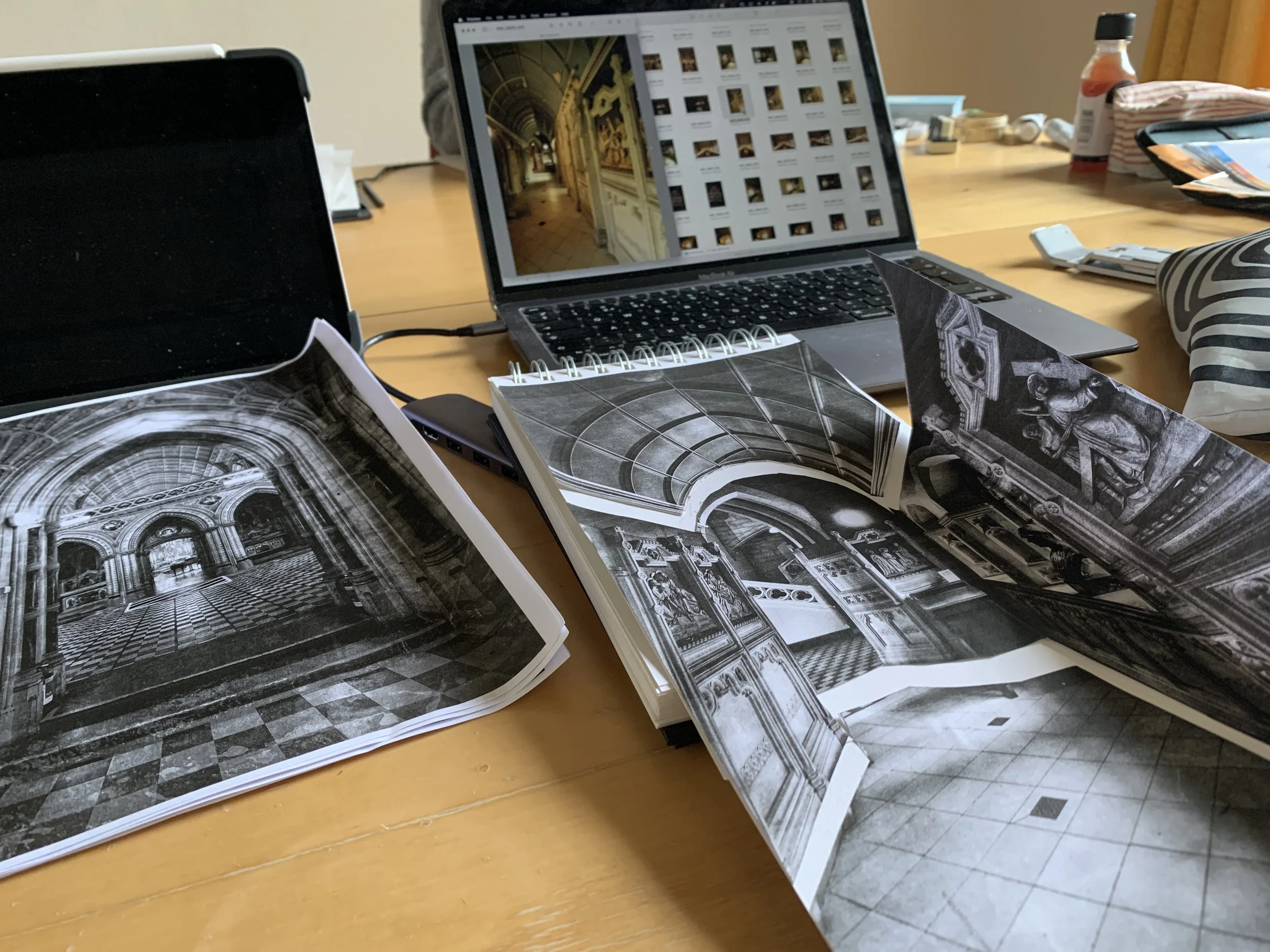 The next stage is to take a couple of them to be exposed onto plates and then print to see how it looks. That's just the nature of the journey. It's the immersion in the location and then the curation of the collection of imagery, some sketchbook work, and then taking them through to exposure on photopolymer plates.