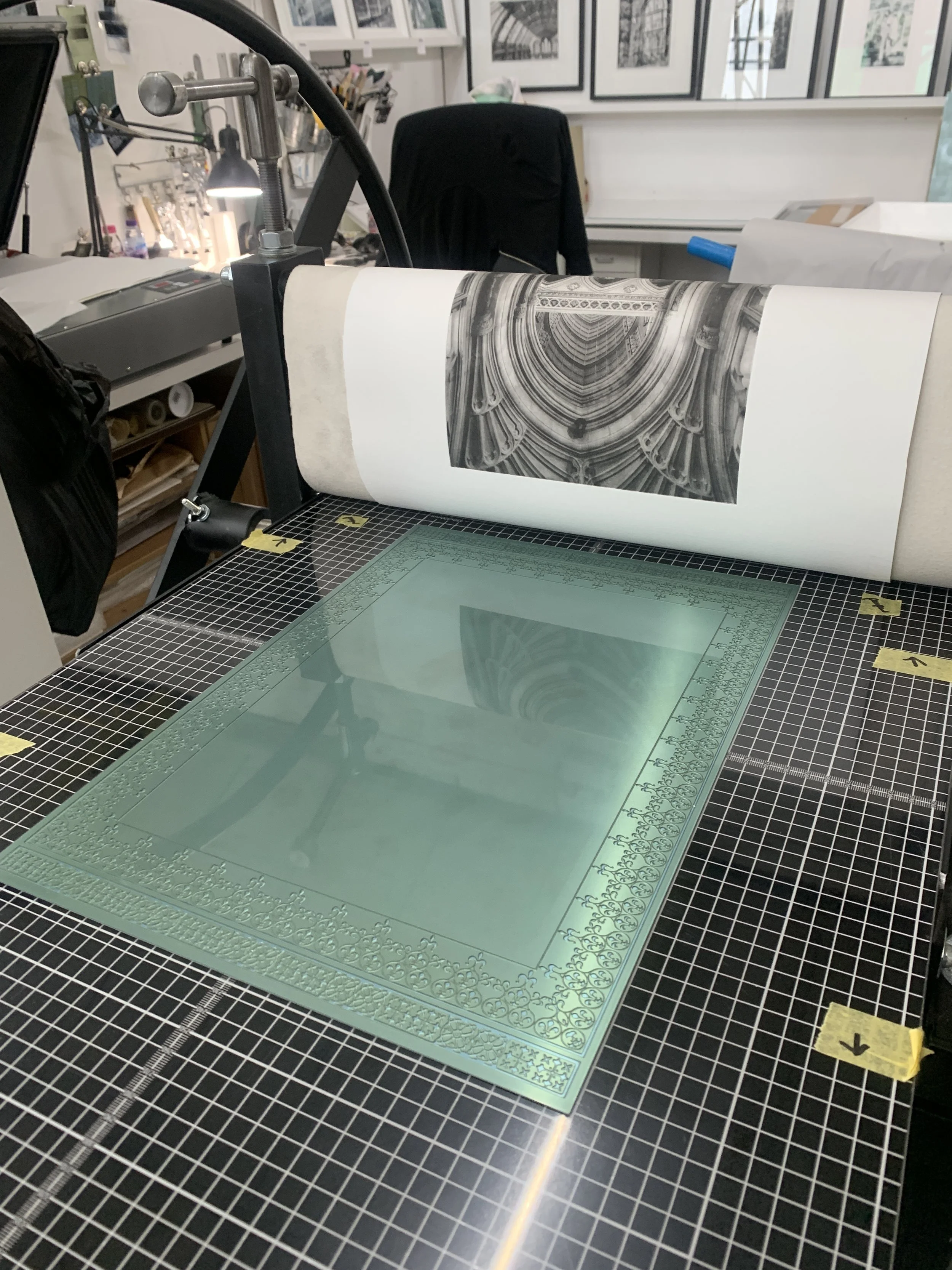 That particular etching is from my Oxford Light series and is based on imagery captured from Oxford and its history. The Natural History Museum, which is linked to the University in Oxford, is a really precious place; not only the architecture itself but the collections too. The building, I think, is classed as a temple for science and it absolutely is! The building has been described as a true temple for science and it absolutely is! Engineering wise, the first roof was made of steel and was incapable of supporting its own weight and had to be replaced. So it's not only the journey these buildings go on, but also the history behind the collection and how it’s evolved. If you're not familiar with that museum or the artefacts, it raises the questions to encompass the collection, the artefacts, and the architecture.