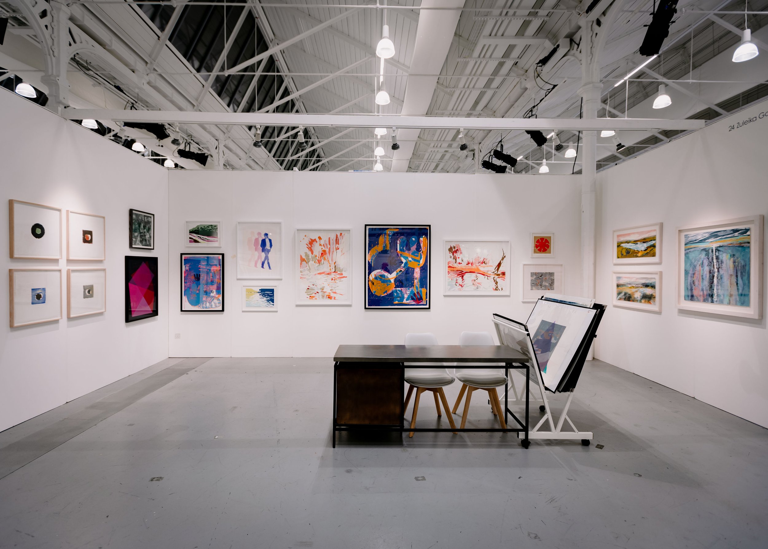 With the exception of sculptural/installation works, all artworks on display must be hung on the panels provided and will not be allowed to remain resting on the floor of the stand unless hidden from view in a purpose-built storage area. Additionally print racks are only permitted on a stand if they can be accommodated in a storage area.