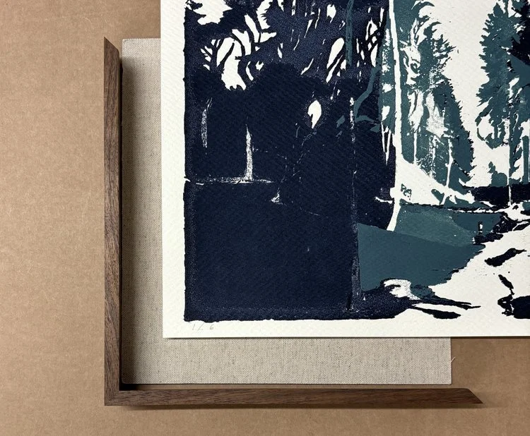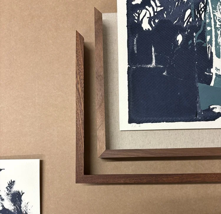 Framing Example - walnut vs oak with linen mount. linen can come in varying colourways